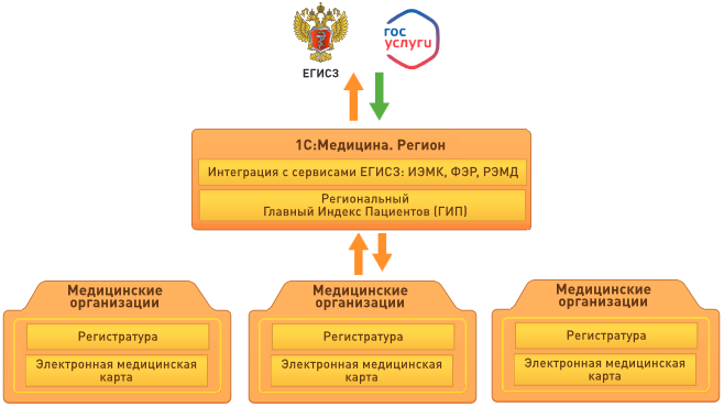 Продукт «1С:Медицина. Регион» предназначен для создания государственных информационных систем в сфере здравоохранения субъектов Российской Федерации (ГИС субъекта) с подключением к подсистемам РЭМД, ФЭР, ИЭМК Единой государственной информационной системы в сфере здравоохранения (ЕГИСЗ). Может использоваться для подключения к подсистемам ЕГИСЗ частных и ведомственных сетей медицинских организаций.